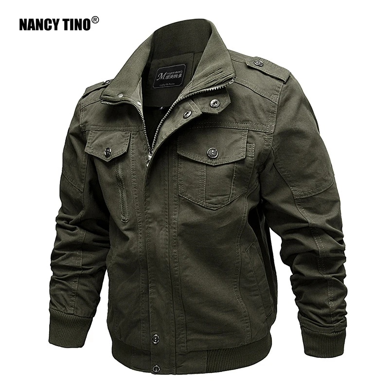 Мужская куртка-бомбер NANCY TINO, хлопковая Классическая куртка в стиле милитари с воротником-стойкой, тонкая ветровка для пеших прогулок, цвета: черный, хаки, зеленый