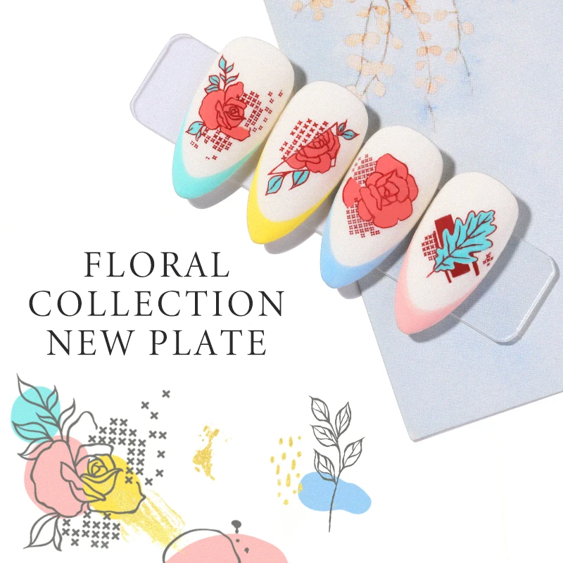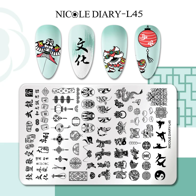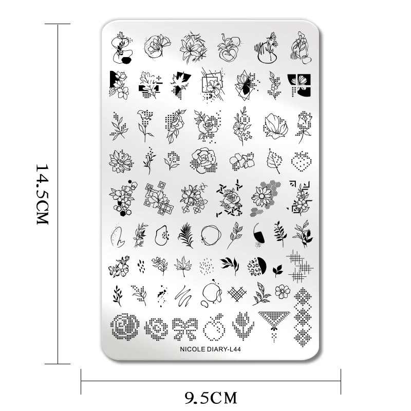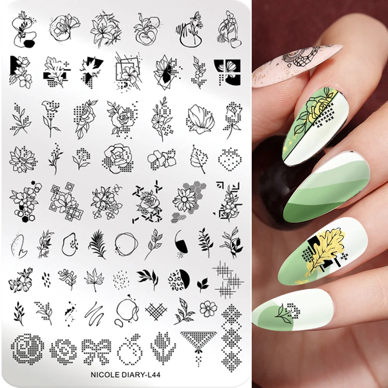 Пластины для стемпинга NICOLE DIARY, шаблон для печати для маникюра большого размера, с геометрическим узором, цветком, листьем