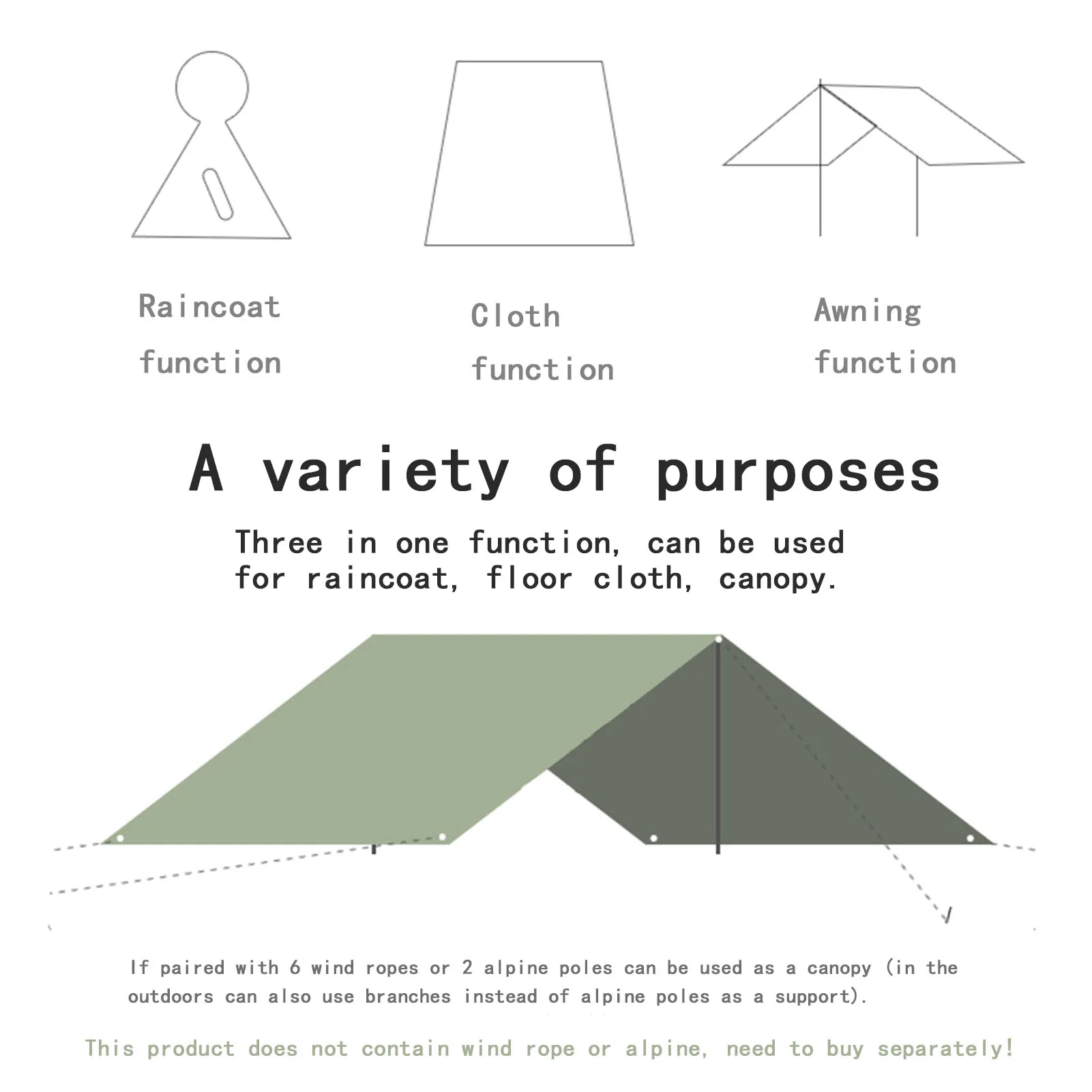 Уличный дождевик, портативный многофункциональный дождевик, водонепроницаемая Пергола, непромокаемый дождевик, напольная ткань для кемпинга, аксессуары
