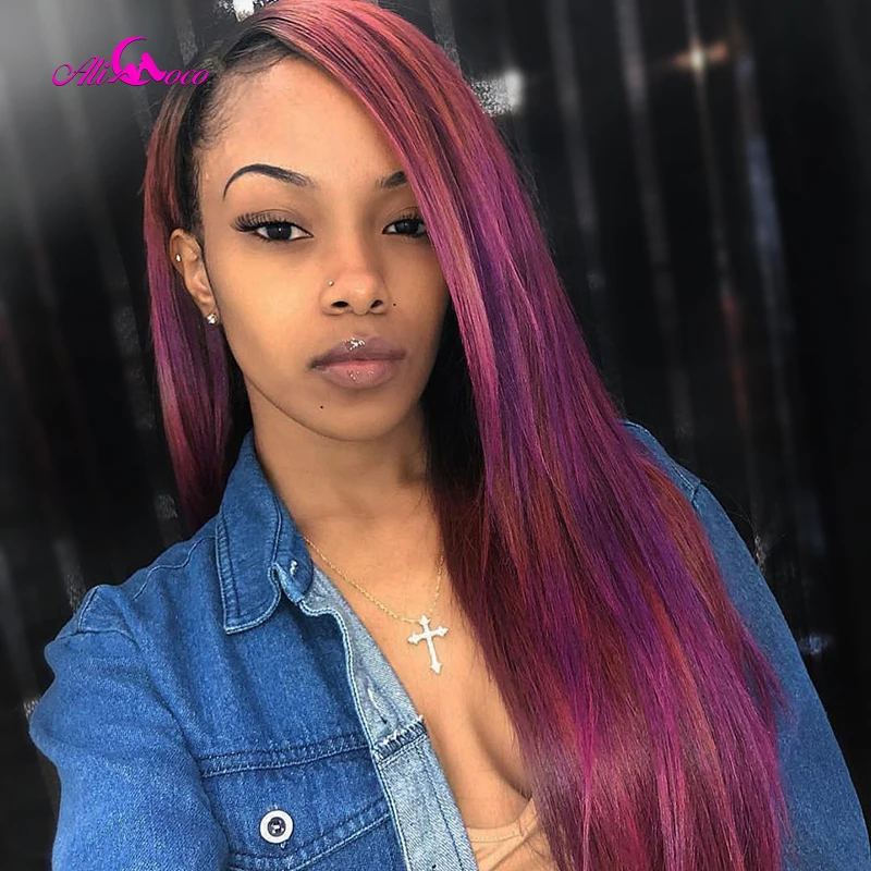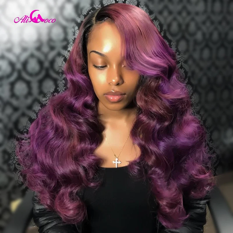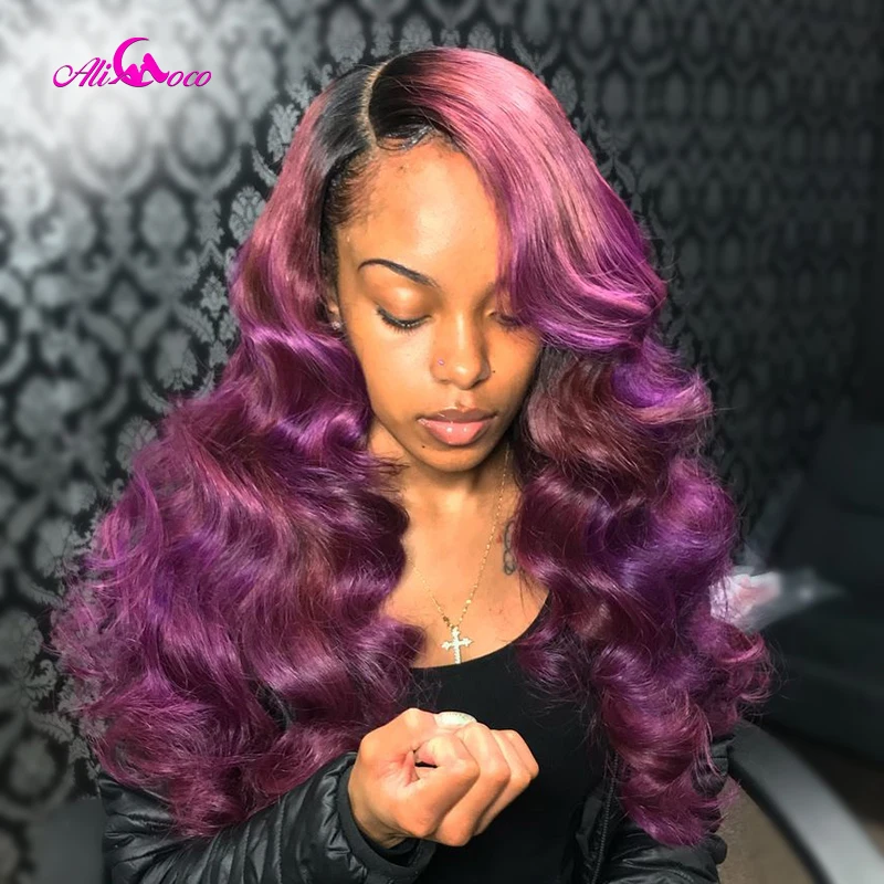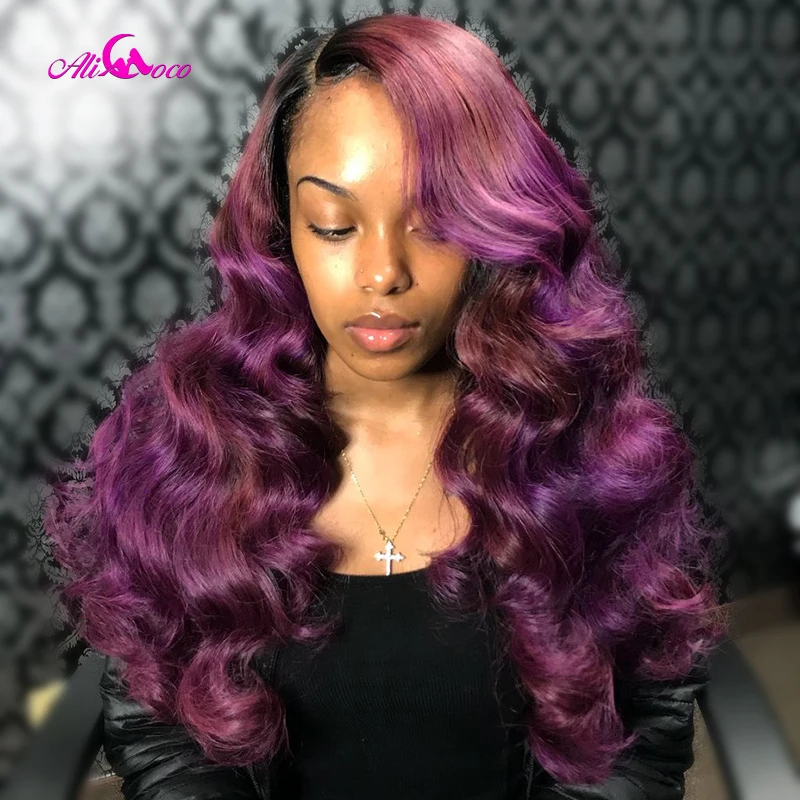 Alicoco-профессиональная компания по производству волос, имеет собственную фабрику. Alicoco занимается оптовыми продажами и предлагает оптовые цены, а также обслуживание VIP-клиентов, наносите собственную этикетку на волосы. Волна тела Омбре фиолетовый цвет человеческих волос парики Мы можем настроить любой цвет/любую плотность/любую прическу для вас, хорошее качество, быстрая доставка
