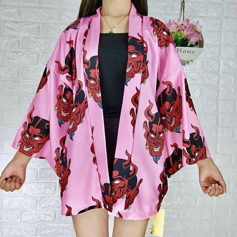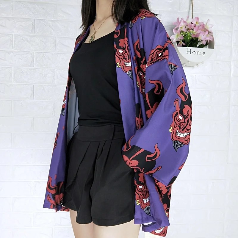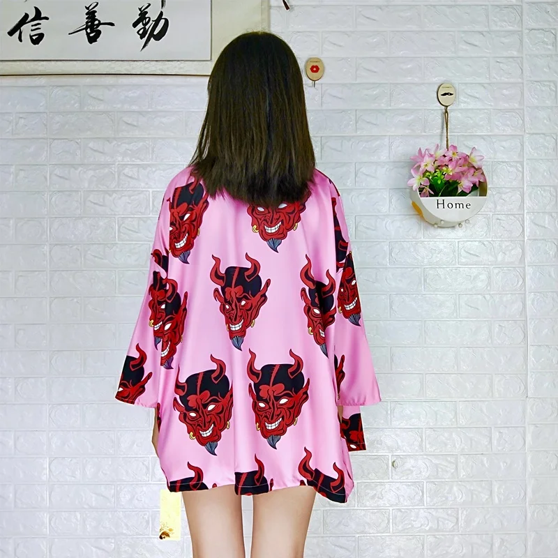 Кимоно QWEEK кардиган с графическим рисунком женское в стиле аниме, юката, рубашка в стиле оверсайз с длинными рукавами, топы для косплея, Японская уличная одежда, на лето