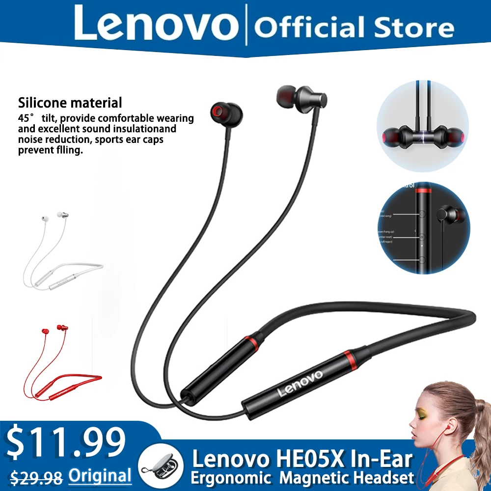 Оригинальные беспроводные наушники Lenovo HE05X с шейным ободом Bluetooth наушники-вкладыши эргономичная Магнитная гарнитура IPX5 Водонепроницаемая с микрофоном
