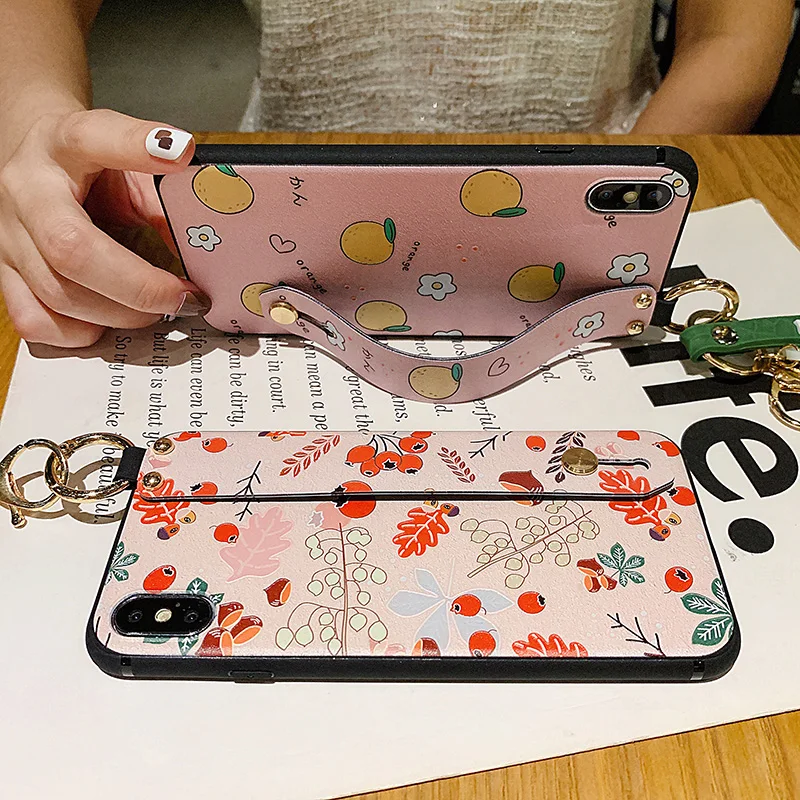 Браслет чехол для телефона Xiaomi Poco X3 NFC CC9 Redmi Note 8 9T Pro Мягкий силиконовый чехол с оранжевым кулоном вишни клубники