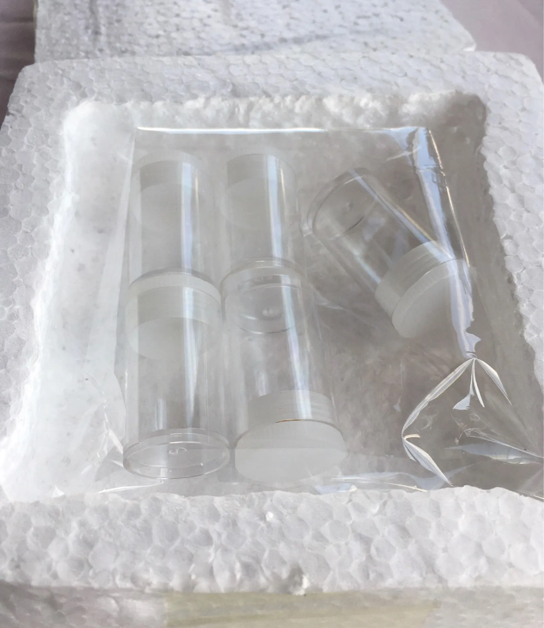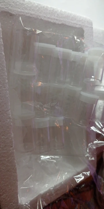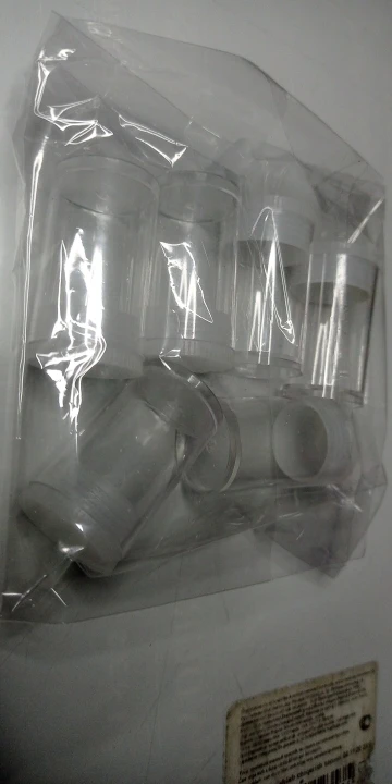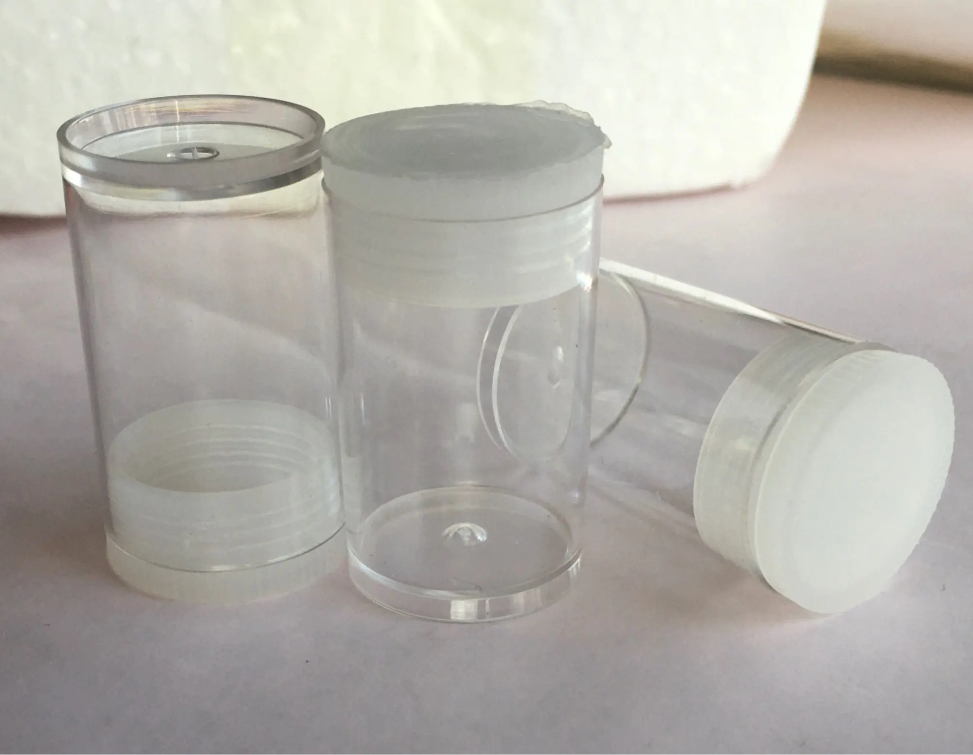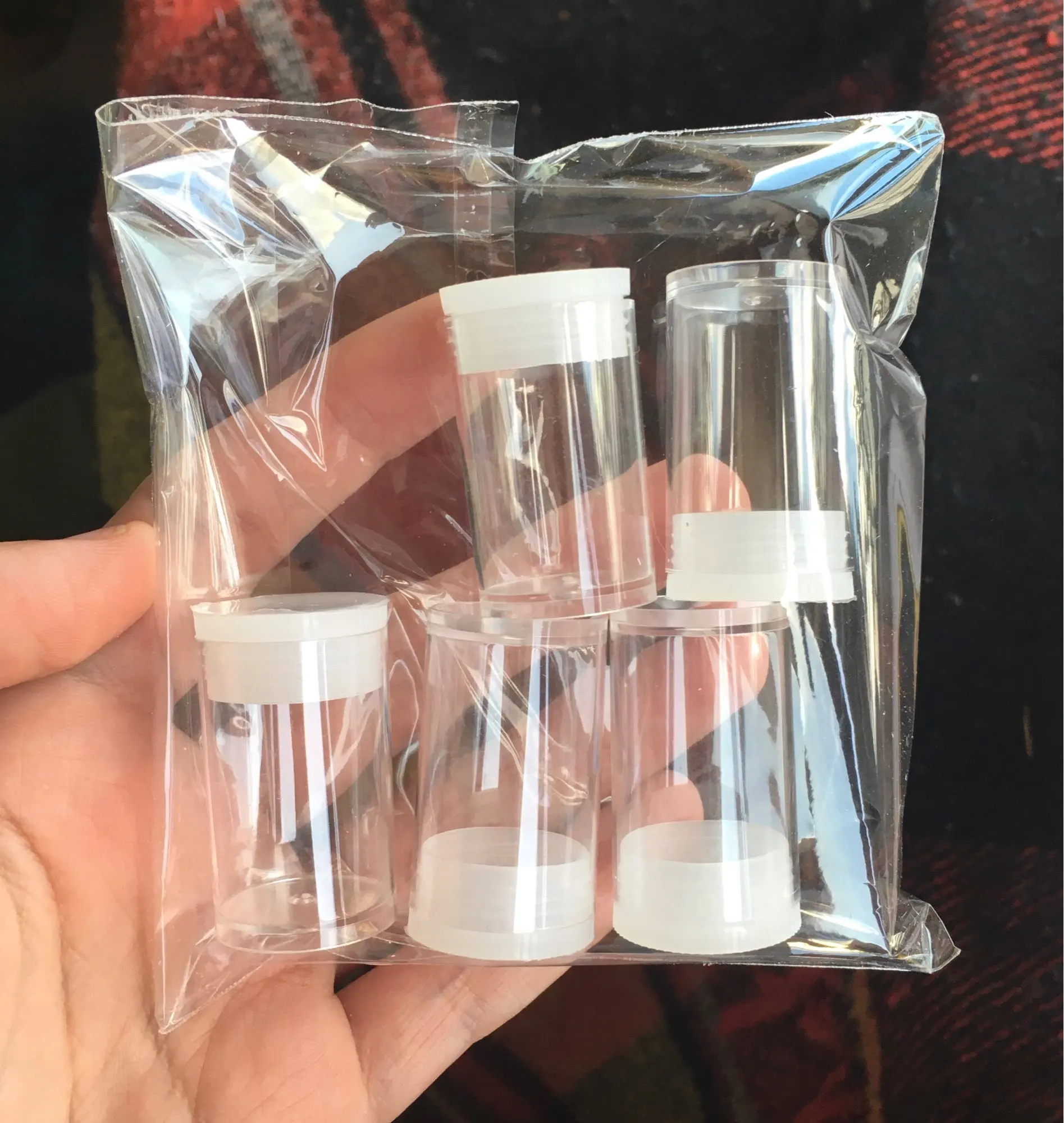 Очень хорошие баночки. Высота без крышки 34мм, высота с крышкой - 37мм. диаметр 21мм. Пластик довольно плотный, упаковано отлично - 5 баночек приехали в пенопластовой коробке. Доставка в Москву за 2 недели. С продавцом не общалась - не было необходимости. Товар и продавца рекомендую!