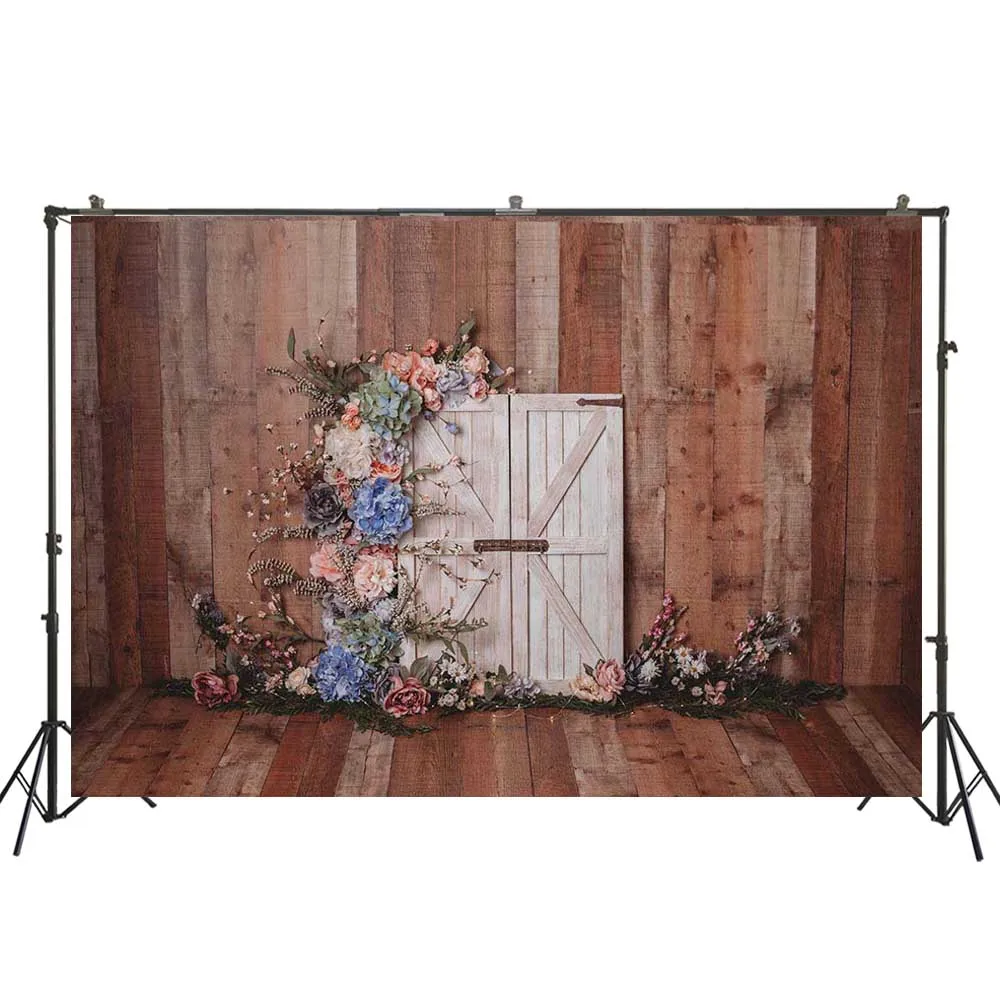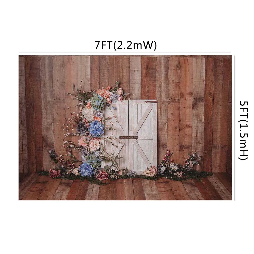 Фон для фотосъемки на 1-й день рождения с изображением деревянной двери и цветов для студийной фотосъемки новорожденных тортов PropsW5365