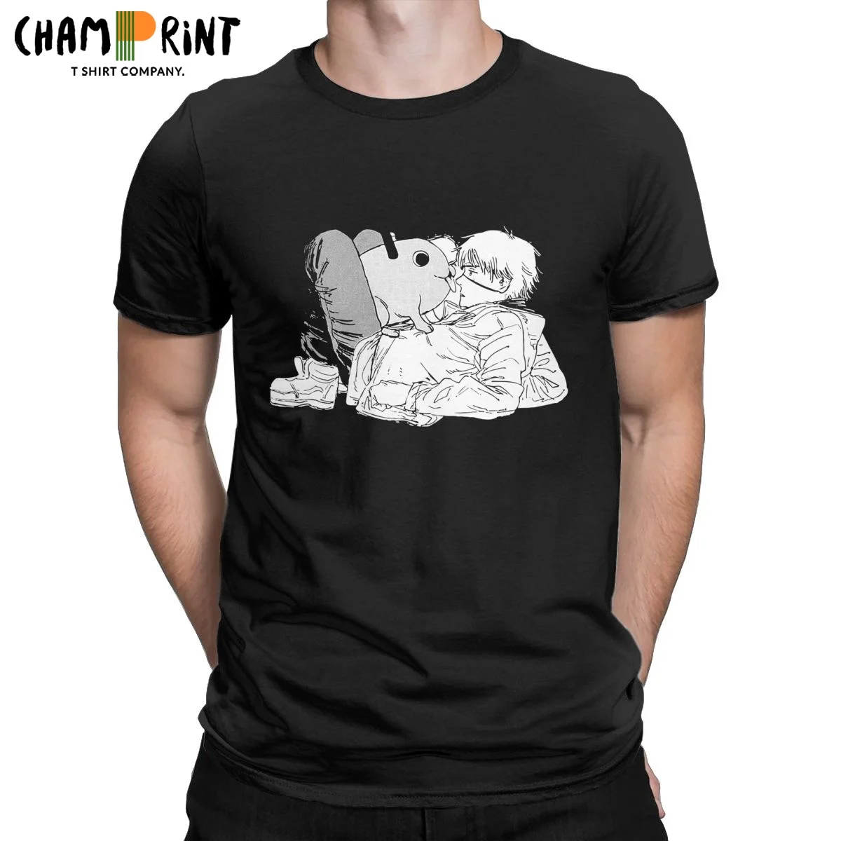 Мужская хлопковая футболка с коротким рукавом, с принтом дэдзи и похита, с принтом бензопилы, манга, дьявола, аниме футболка с круглым вырезом, новое поступление