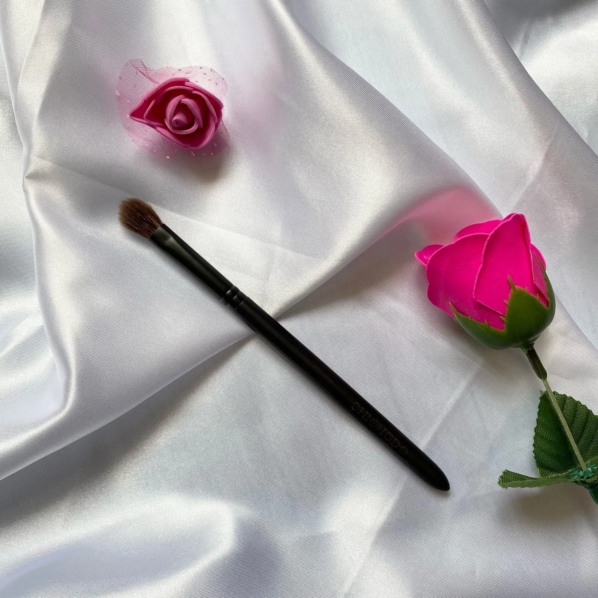 Отличная кисть для нанесения теней. Ворс - натуральная козочка. Мягкий, плотно набит. Кисть пушистая и мягкая. Ручка из натурального дерева, есть гравировка бренда. Доставка - 8 дней до Москвы! К покупке РЕКОМЕНДУЮ!