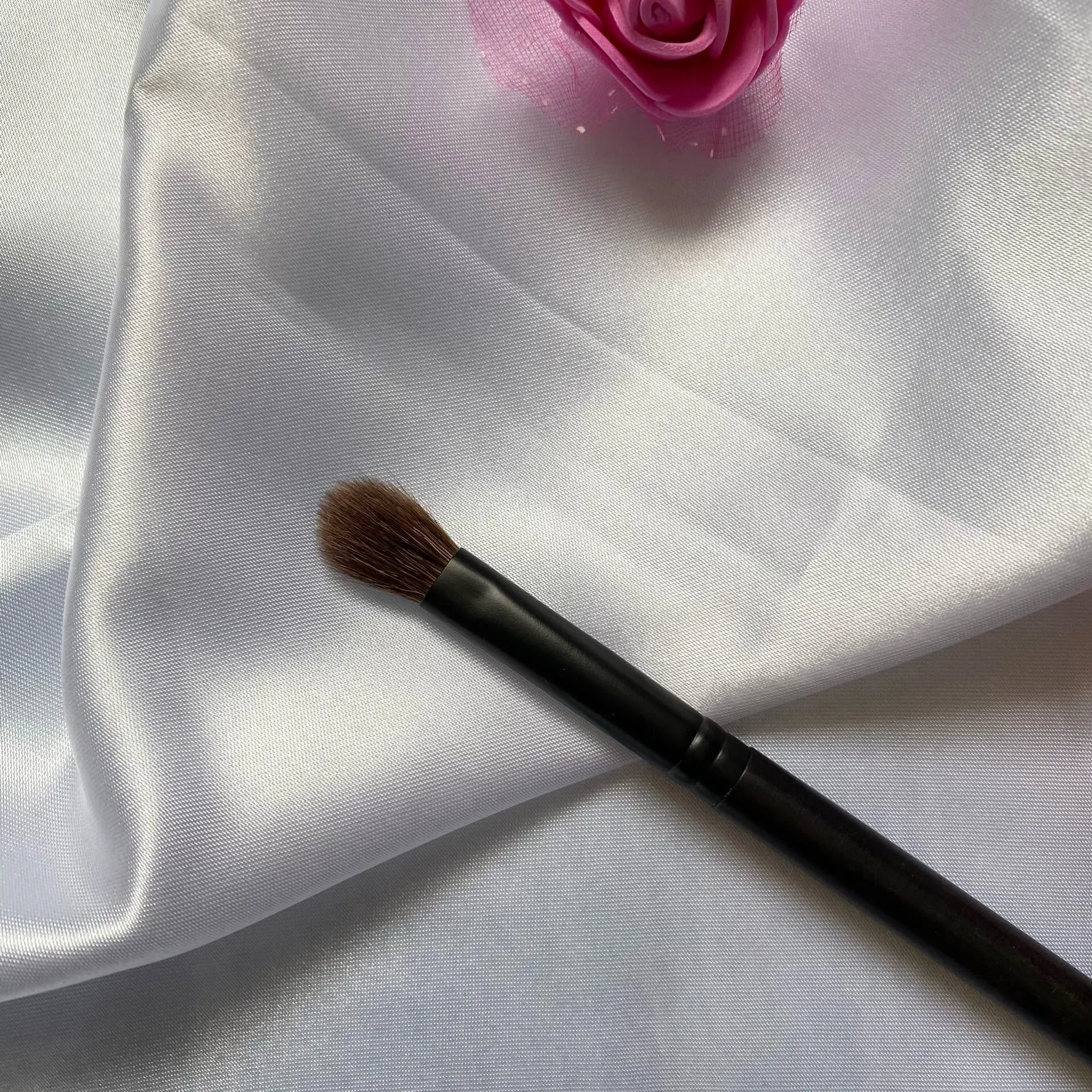 Кисть для макияжа. Изготовлена из натурального козьего ворса. Ворс не выпадает,не линяет. Материал рукоятки дерево, есть гравировка названия магазина. Хорошо наносит и растушёвывает тени. Упаковано в фирменную коробку. Доставка быстрая. Рекомендую к покупке