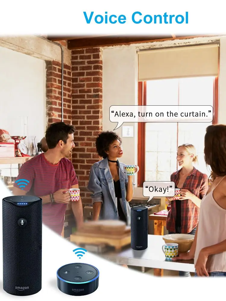 Голосовое управление с Alexa, Google Home, чтобы включить и выключить шторы.