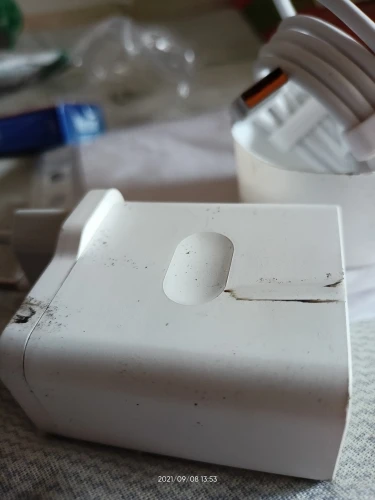 Посылка плохо упакована, вилка зарядного устройства выглядывала наружу. Через несколько дней после получения посылки зарядное устройство перестало работать.