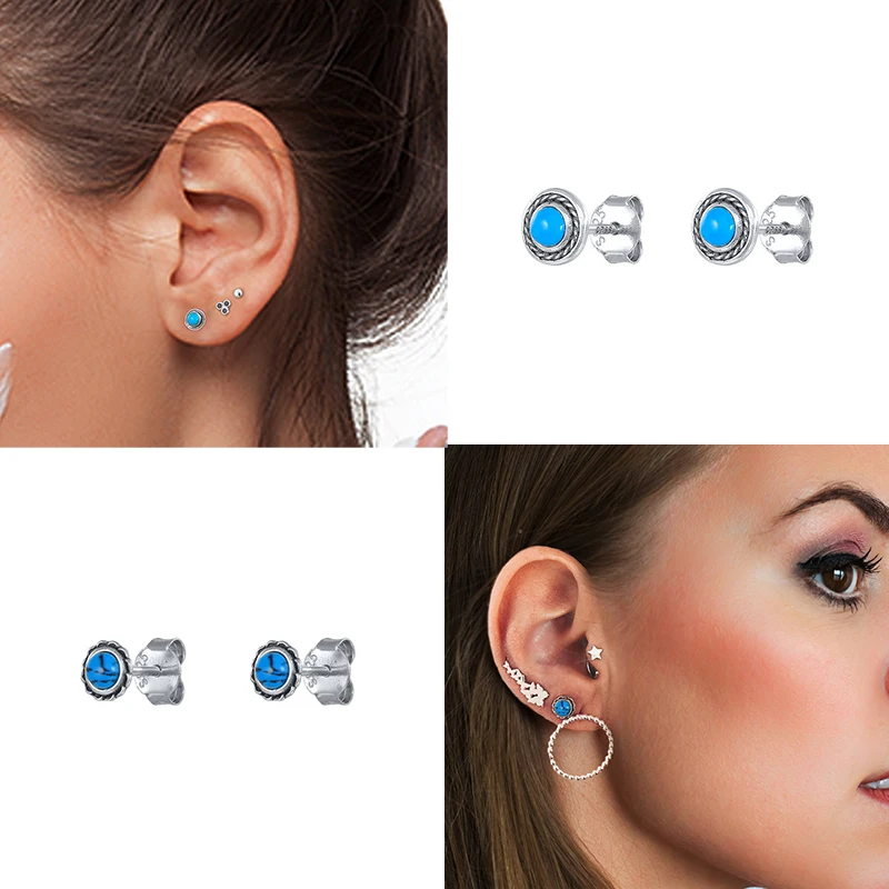 CANNNER прекрасный мини шпильки для ушей, серьги для женщин и девушек, милое голубое платье Бирюзовый Пирсинг Серьга из нержавеющей стали, 925 стерлингового серебра ювелирные изделия