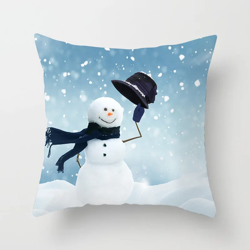 Рождественская подушка крышка Рождественская Подушка Чехол рождественские украшения для дома с утолщённой меховой опушкой, хороший декор со снеговиками, набор Happy Новый год 2020 2021