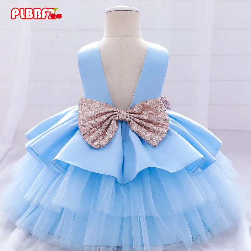 PLBBFZ, 2022 г., платье с большим бантом для новорожденных девочек на 1-й день рождения, элегантное платье принцессы с цветочным бантом, детское платье для крещения