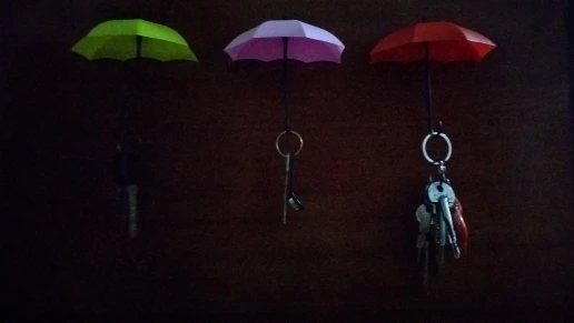Хорошие крючки, зонтики яркие. Пока не знаю как на скотче держаться будут, думаю нужно винтиком дополнительно укрепить. Но идея хорошая.