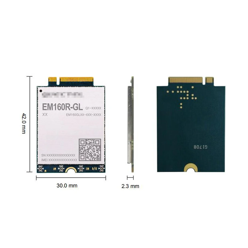 Quectel EM160R-GL-это модуль LTE Advanced Category 16. Принятие 3GPP версии 14 технологии, он обеспечивает скорость 1,0 Гбит/с нисходящий канал и 150 Мбит/с по восходящей линии пикового значения скорости передачи данных и выполнен в M.2 форм-фактор.