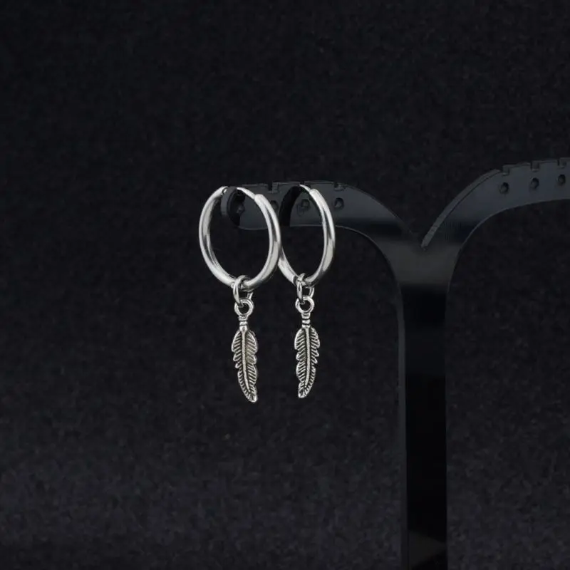 Подвеска в виде листьев в стиле хип-хоп Kpop Boy, титановое перо, серьги-кольца, корейские украшения