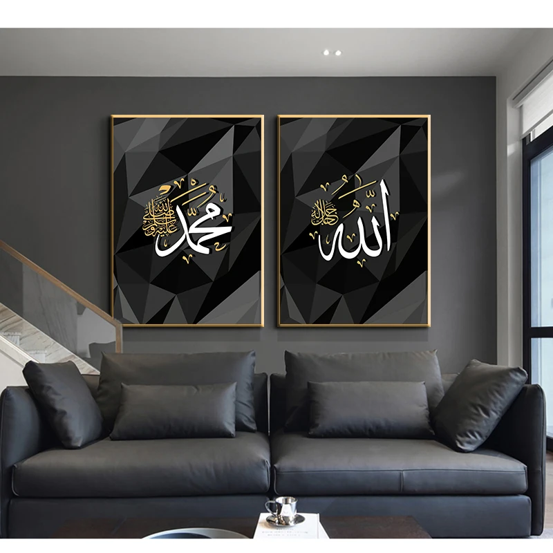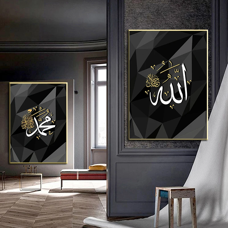 Исламский арабский холст с HD-печатью Аллах, геометрические настенные картины, плакаты для Рамадана, украшение для мечети, Прямая поставка