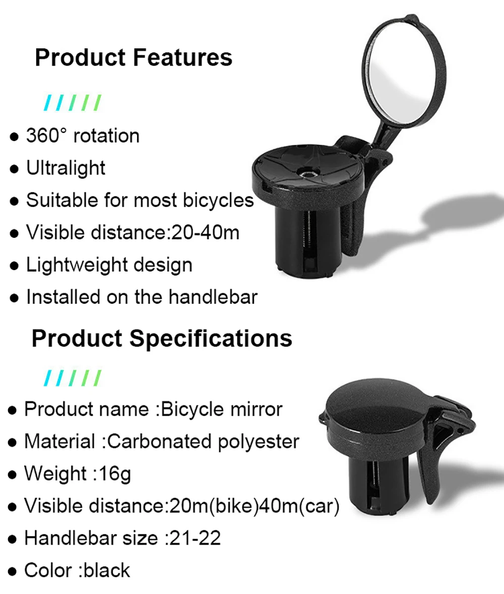 Зеркало заднего вида, руль для горного велосипеда, с вращением на 360