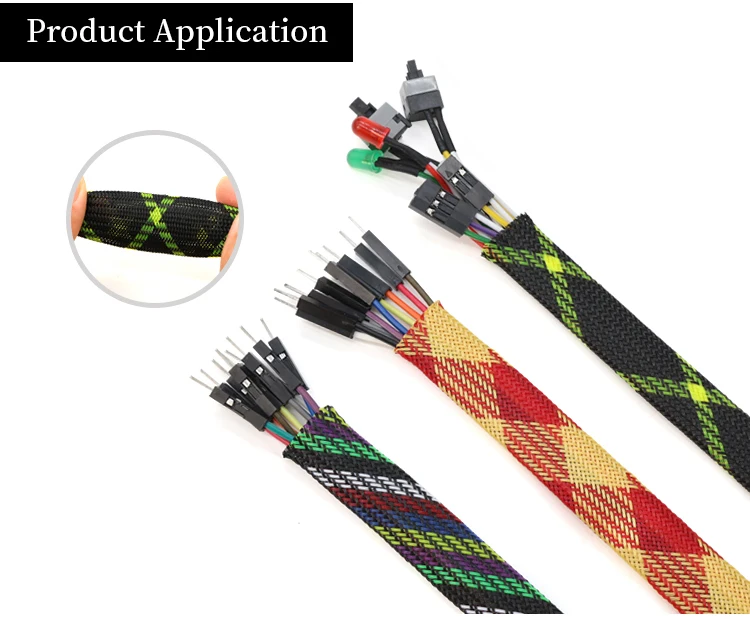 Черный УФ-желтый ПЭТ Плетеный проволочный рукав 2 4 6 8 10 12 16 мм...