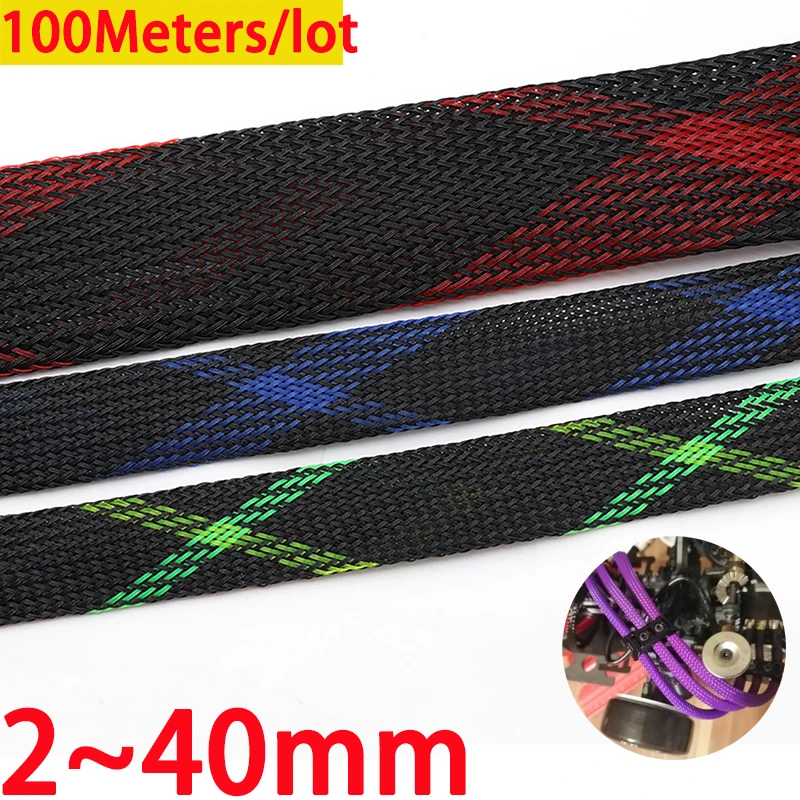 100 м 2 4 6 8 10 12 14 16 18 20 25 30 40 мм высокой плотности ПЭТ плетеные расширяемый рукав провода Обёрточная бумага утепленная нейлоновая защитный бандаж оболочка