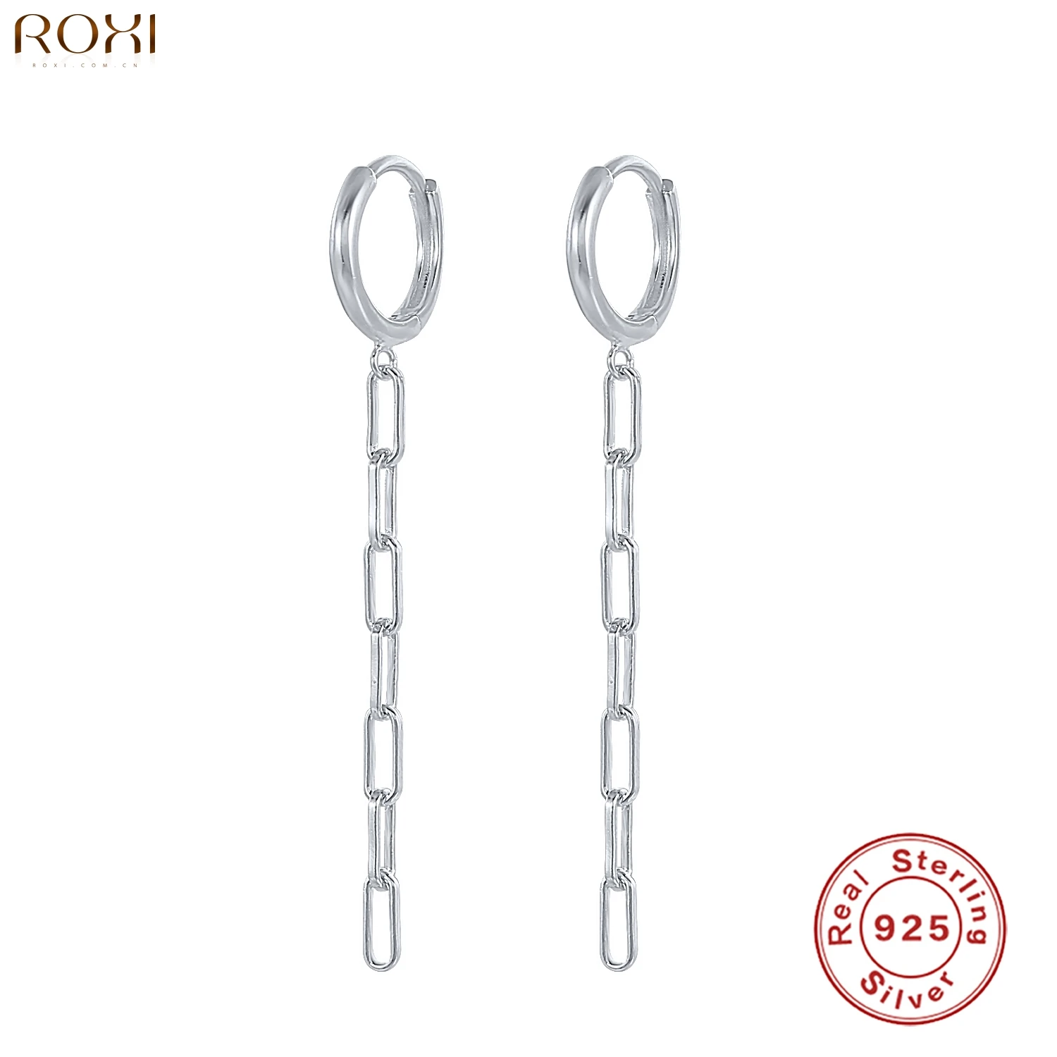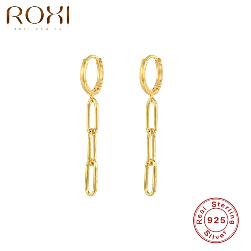 Женские серьги-кольца ROXI, серьги-кольца с цепочкой в виде бумажных зажимов, 925 Круглые серьги Huggie в стиле хип-хоп, новые ювелирные украшения