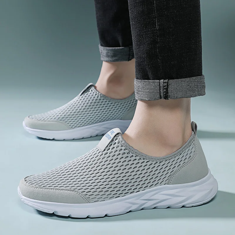 Кроссовки мужские сетчатые без шнуровки, дышащие Сникерсы для прогу...