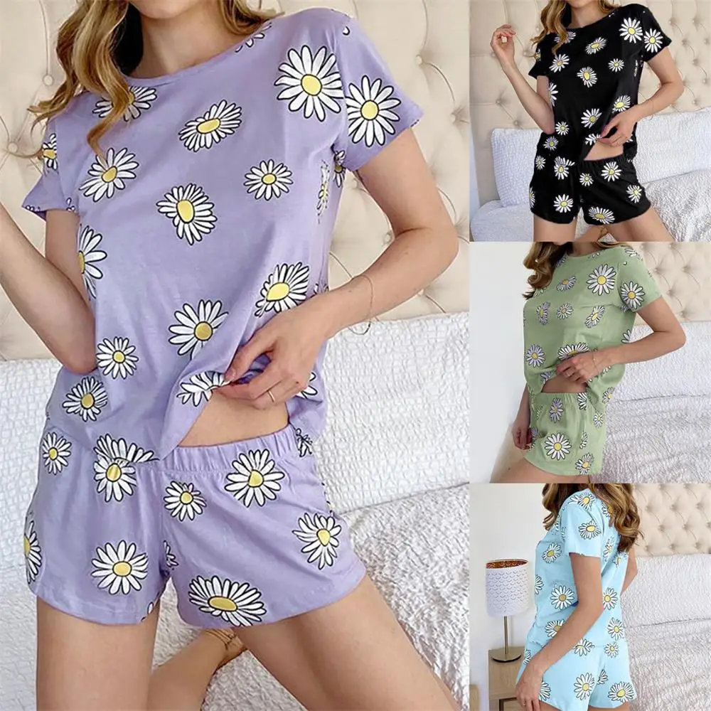 Свободные комплекты из двух предметов, свободные пижамные комплекты женские пижамы для сна с коротким рукавом и принтами, домашняя одежда, пижама, нарядное платье Mujer S-5XL размера плюс
