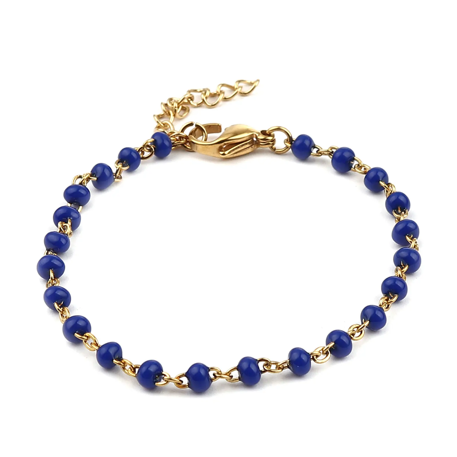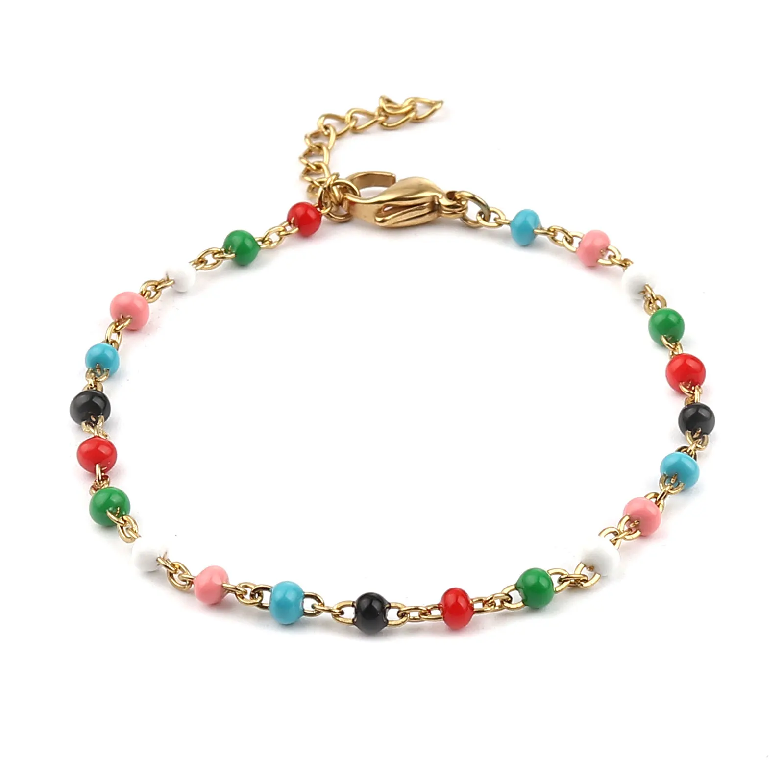Браслет из эмалированных бусин, из нержавеющей стали, браслет-цепочка, золотого цвета, разноцветные эмалированные украшения для рук, для вечерние