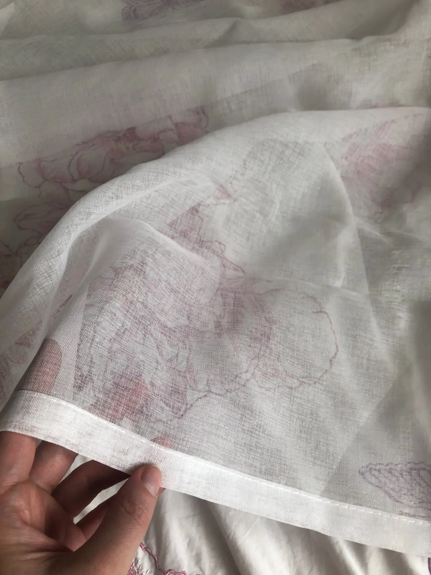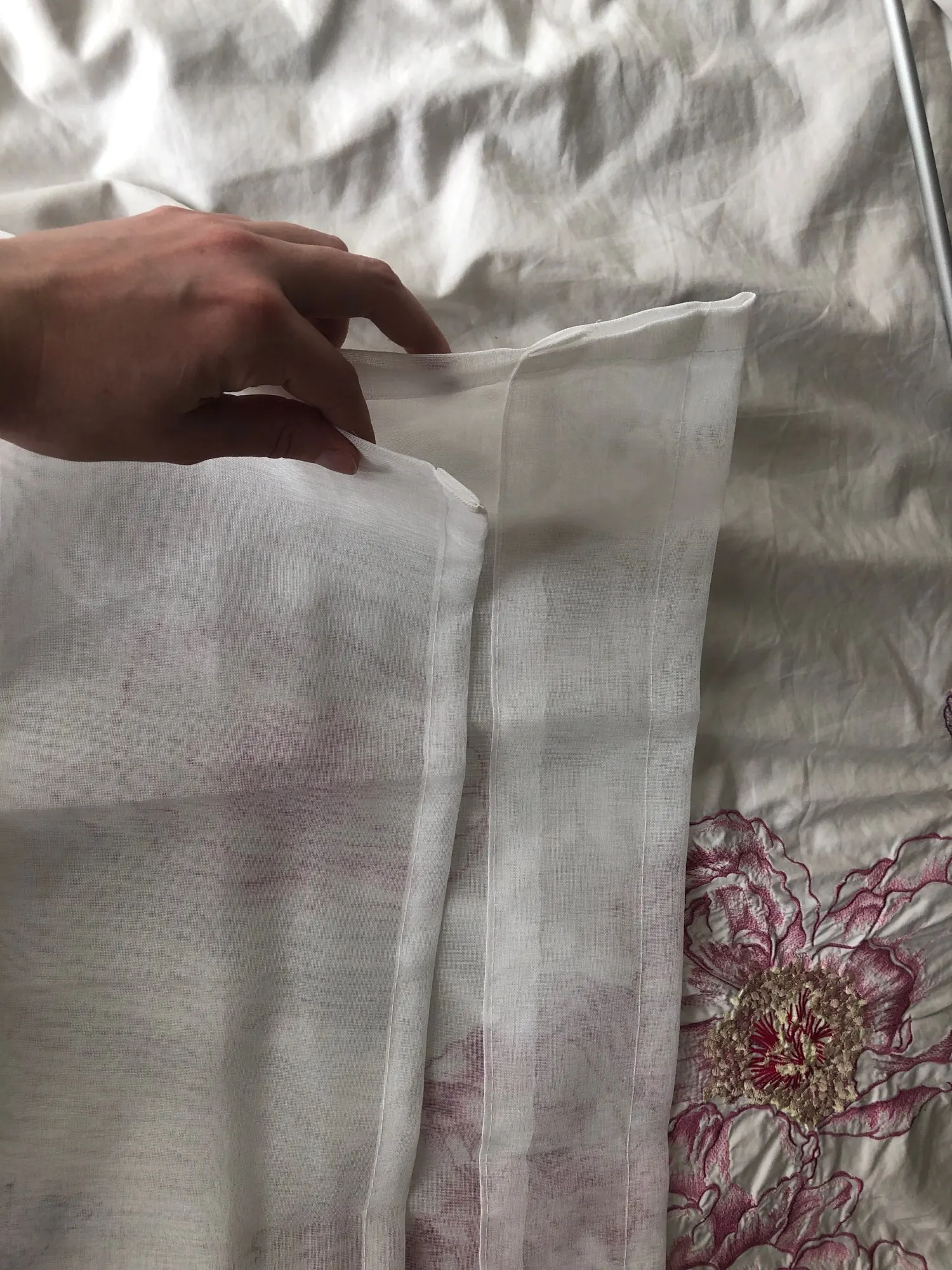 Качество, конечно, на троечку. Подхвата в комплекте нет. Материал похож на накрахмаленную марлёвку, хоть и синтетика. Надеюсь, что после стирки жесткость не потеряет. На видео продавца материал выглядит как белая органза, но это всё что угодно, только не органза. Швы - как если бы я сама на машинке шила: местами криво, нитки торчат, закрепку видно. Хотя именно швы не критично. Главный минус в том, что кармашки, позволяющие продеть карнизы, сделаны двойными только с одной стороны. То есть если диаметр карнизов больше 10 мм, эти шторы использовать, как задумано, не получится никак. Если карниз совсем тоненький, то нормально, но рюшечек, как на фото и видео, не будет! На окно ещё не вешала, надо по-новой подбирать карнизы, т. к. стандартные карнизы-кафе не пролезут никакими силами.