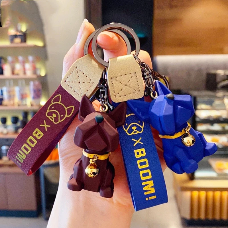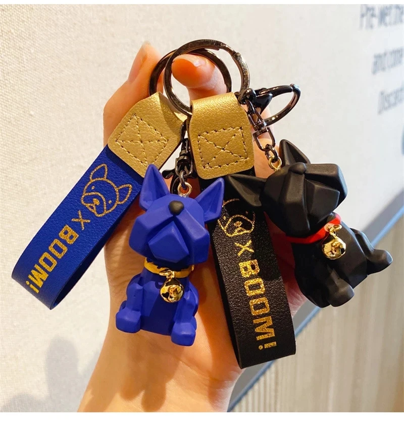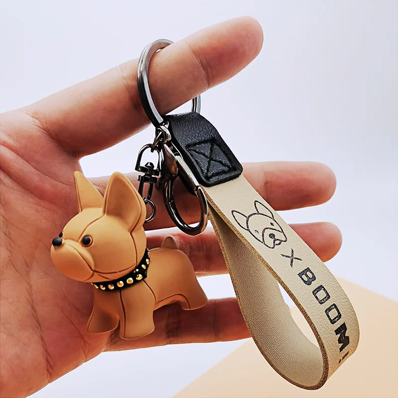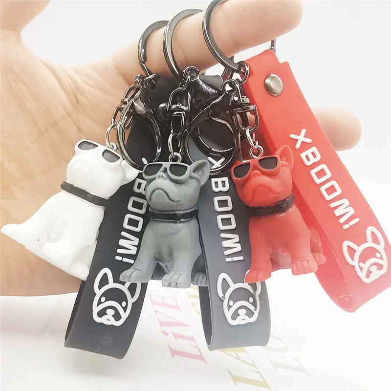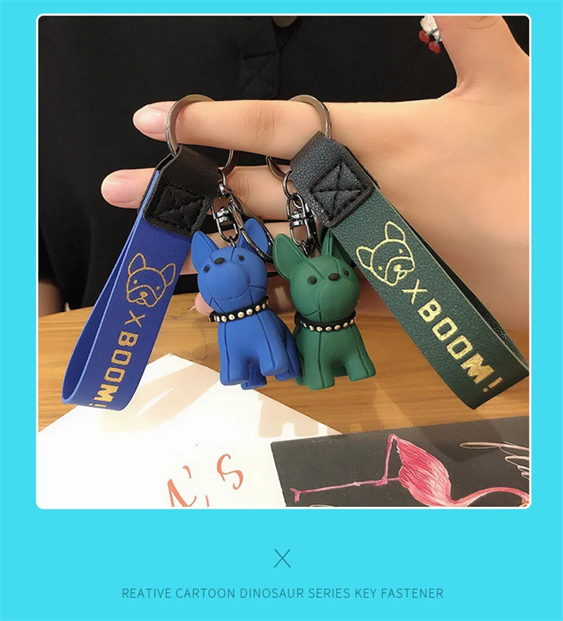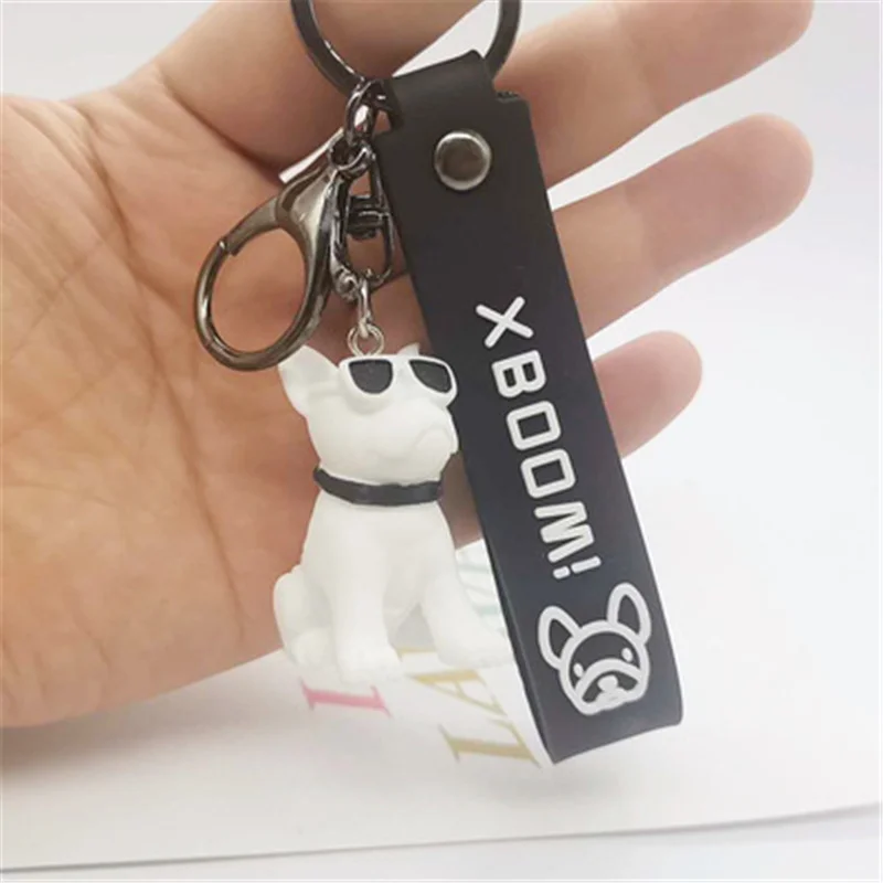 Брелок для ключей с изображением французского бульдога в стиле панк, подвески для сумки для мужчин и женщин, автомобильный держатель с мультяшной собакой, ювелирные изделия, аксессуары
