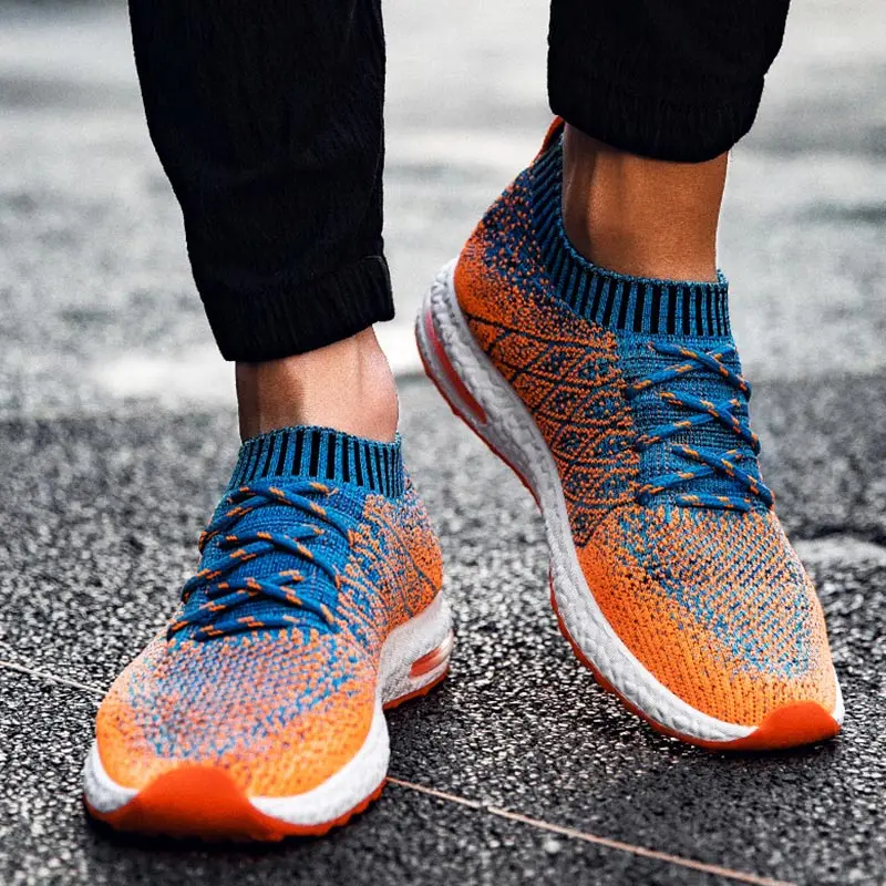 Размера плюс летние кроссовки с верхом из сетчатого материала носки мужские кроссовки для бега спорта Спортивные кроссовки для занятий спортом для мальчиков голубого и лазурного цвета Оранжевая Вязаная Boty GME-1266