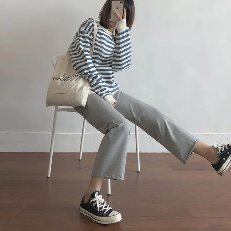 Брюки Женские однотонные с широкими штанинами, эластичная резинка на талии, свободные простые дышащие мягкие эластичные школьные, универсальные, ультрамодные