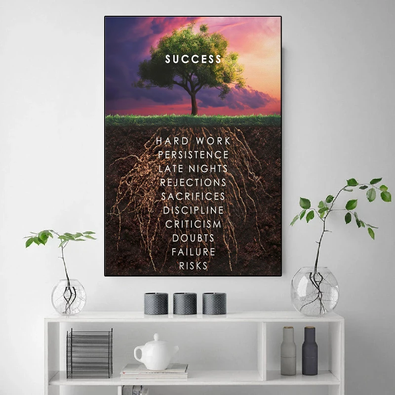 Мотивационная Картина на холсте с большим деревом, офисный пейзаж, плакат, печатные настенные картины, скандинавский Декор для гостиной и дома
