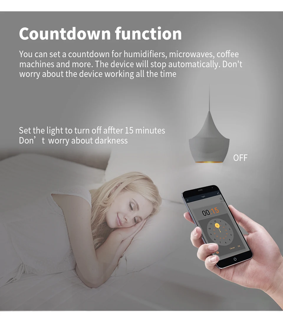 Вы можете установить обратный отсчет для увлажнителей, микроволн, кофемашин и многого другого. Устройство остановится автоматически. Не беспокойтесь о том, что устройство работает постоянно.