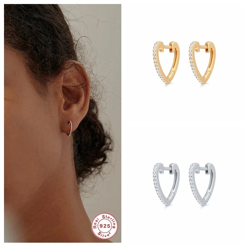 Серьги-кольца из серебра 925 пробы с цирконием в форме сердца для влюбленных, подарок на день Святого Валентина, пирсинг