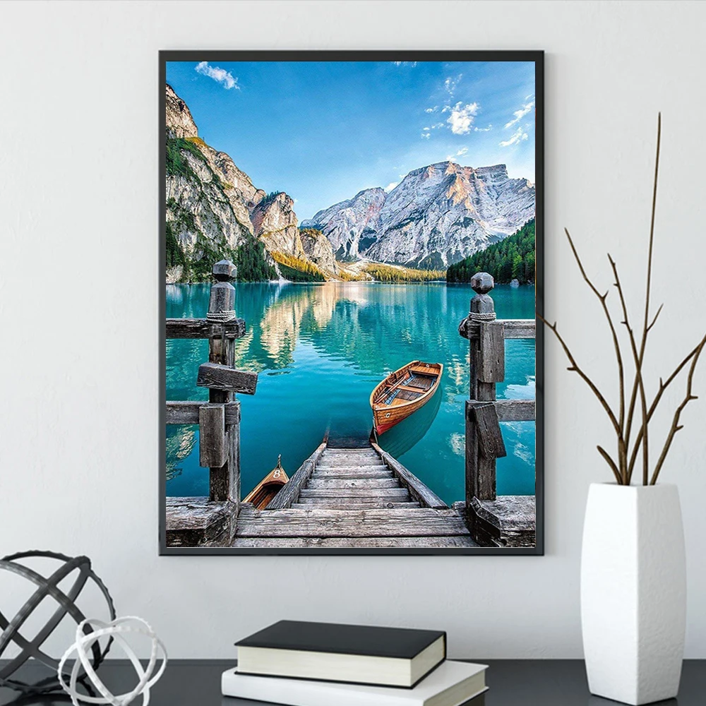 Pintura de diamante 5D, joyier de botaje, barco de paisaje, bordado de diamantes faka mano, punto de cruz,