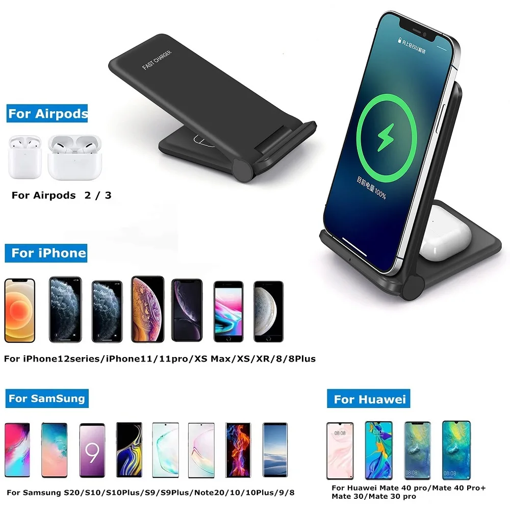 Беспроводное зарядное устройство 2 в 1, складная подставка для iPho...