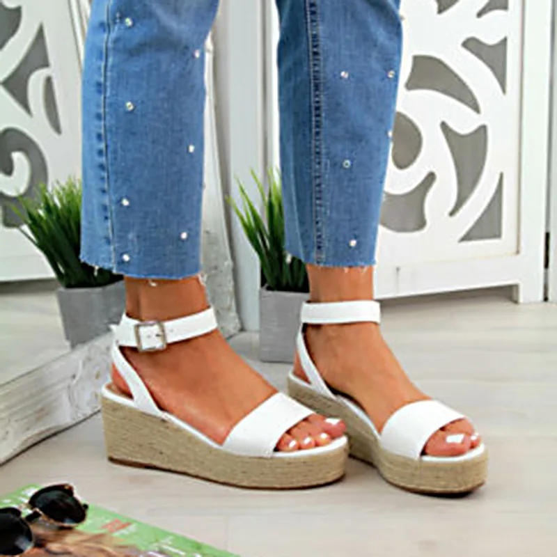 Сандалии женские на платформе с леопардовым принтом, модные босоножки-гладиаторы с ремешками, туфли на танкетке, повседневные Эспадрильи с открытым носком, цвет белый, лето
