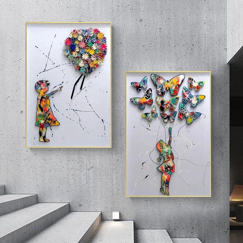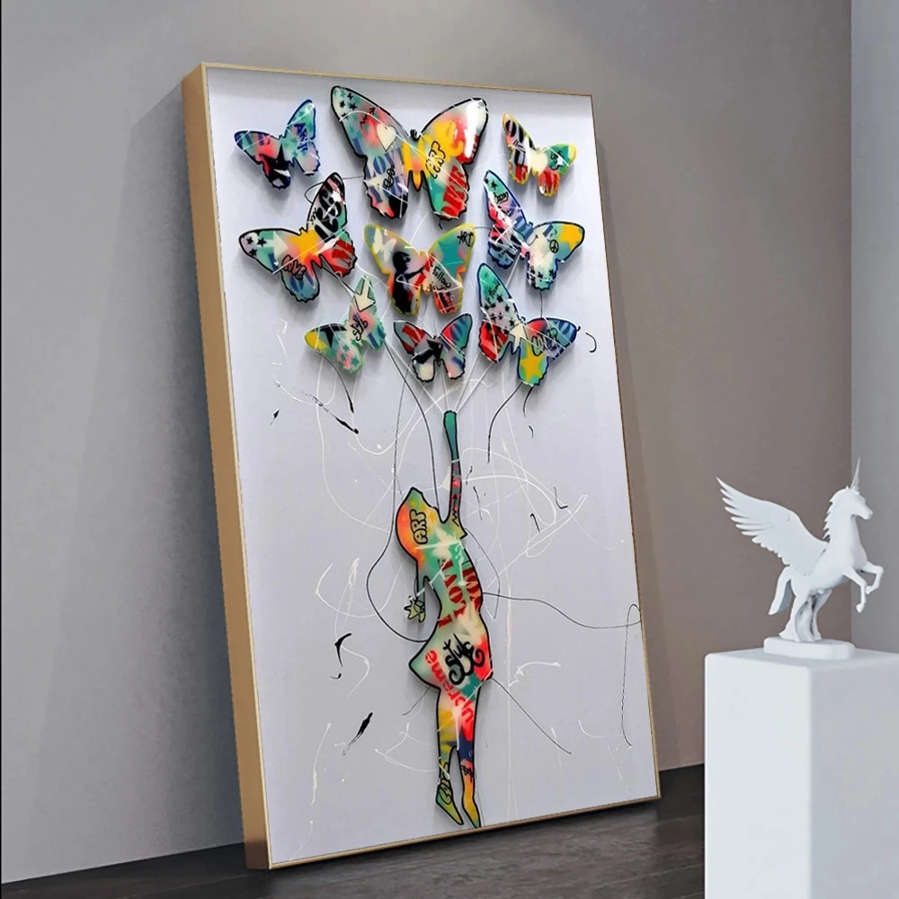 Абстрактная Картина на холсте с бабочками и цветами, красочные плакаты и принты, настенные картины для гостиной, домашний декор