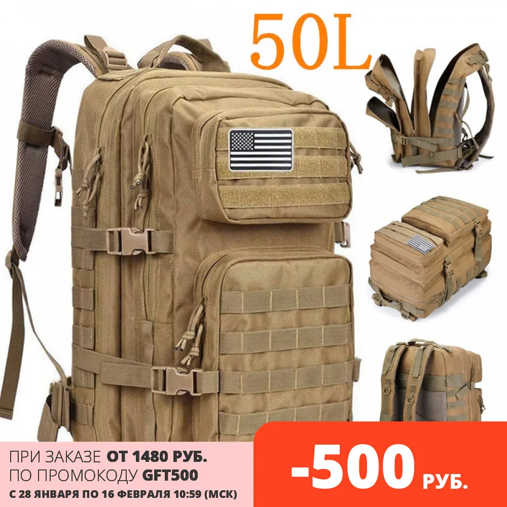 Новинка 2021, мужской военный рюкзак 50 л, 3p, военная армейская тактическая походная сумка, спортивный рюкзак для охоты и трекинга