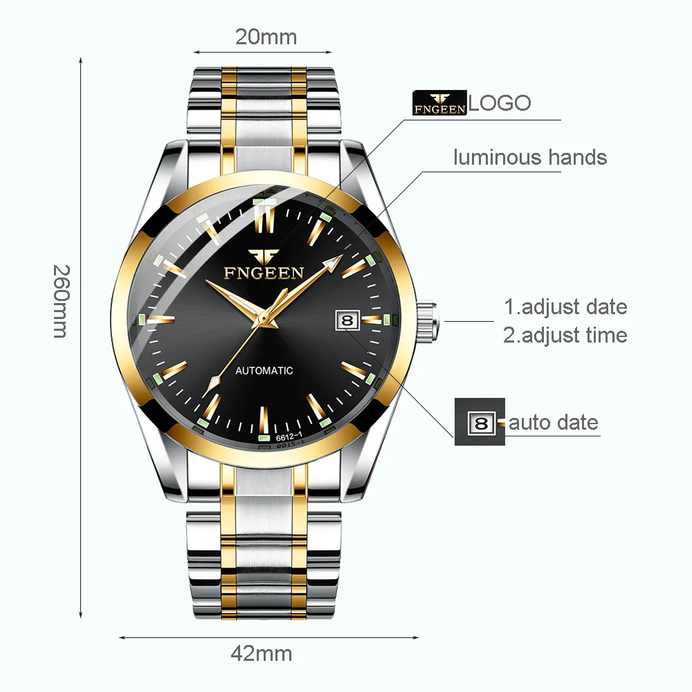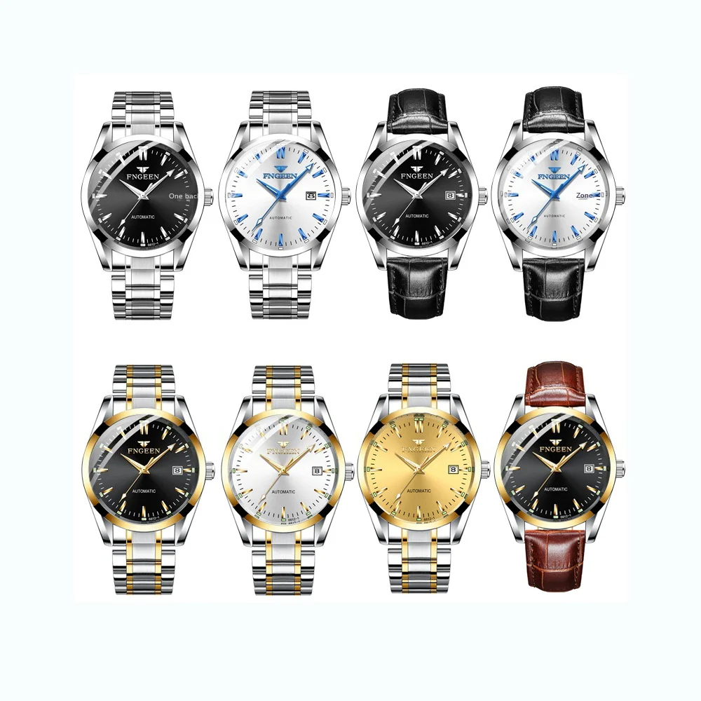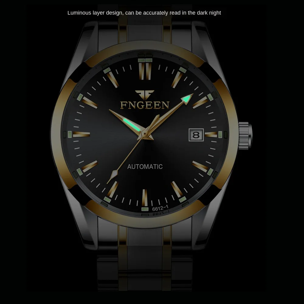 Часы наручные FNGEEN Мужские автоматические механические, брендовые светящиеся модные деловые повседневные водонепроницаемые