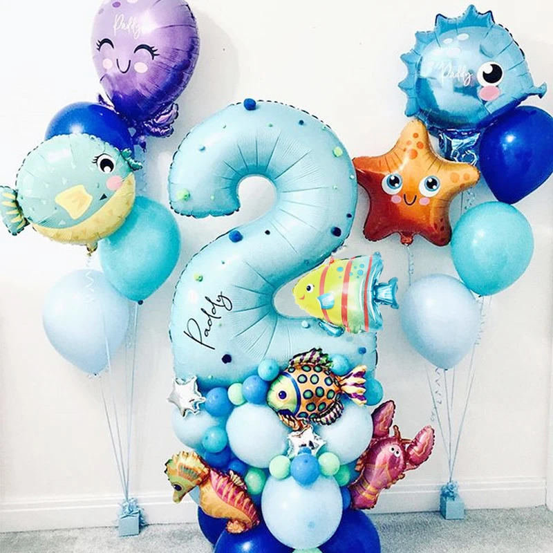 Воздушные шары с синими цифрами под морем, 43 шт., воздушные шарики в виде животных Русалочки, для вечевечерние, детского дня рождения, вечевечерние НКИ, украшения для будущей мамы
