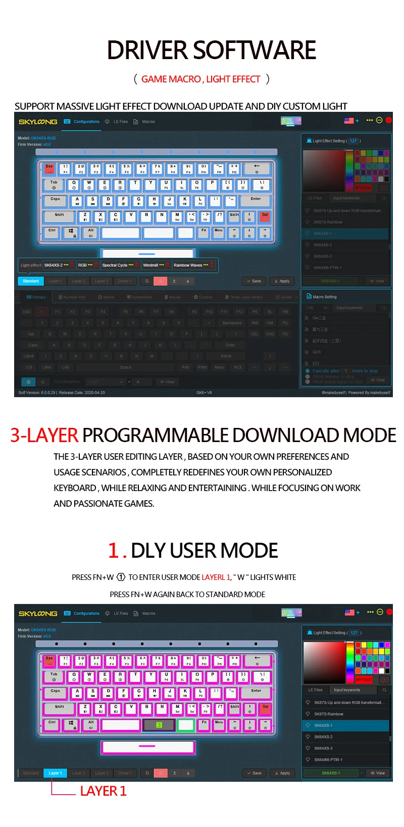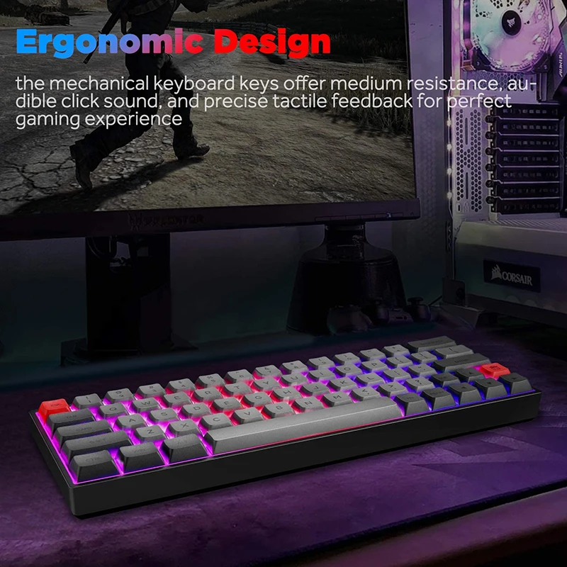 GK64/SK64-это стандартная клавиатура 64% с RGB подсветкой, USB-C проводным подключением и оптическими переключателями. Кабель USB-C отстегивается для удобства переноски. Оптические переключатели гораздо прочнее, чем обычные механические переключатели клавиатуры и рассчитаны на 100 миллионов нажатий клавиш. Они имеют высокую пунктом возбуждения 1,5 мм для быстрого ответа. Светильник Strike optical switches использует горизонтальный инфракрасный луч, который передается по ширине внутреннего кнопочного выключателя. Инфракрасный луч, как правило, блокируется от достижения датчика поперек от него стволом. После нажатия выключателя ствол выключателя больше не блокирует инфракрасный луч и луч обнаруживается датчиком, который активирует переключатель. Благодаря оптический механизм волоконно-оптической имеет очень быстрое время отклика 0,2 мс, что означает, что быстрее реакций в тех времен, когда время имеет решающее значение, как, например, при играх.