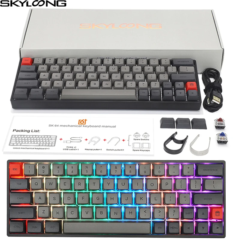 Клавиатура Skyloong SK64S с Bluetooth, клавиши RGB PBT, Gateron, Механическая игровая клавиатура для рабочего столаноутбука