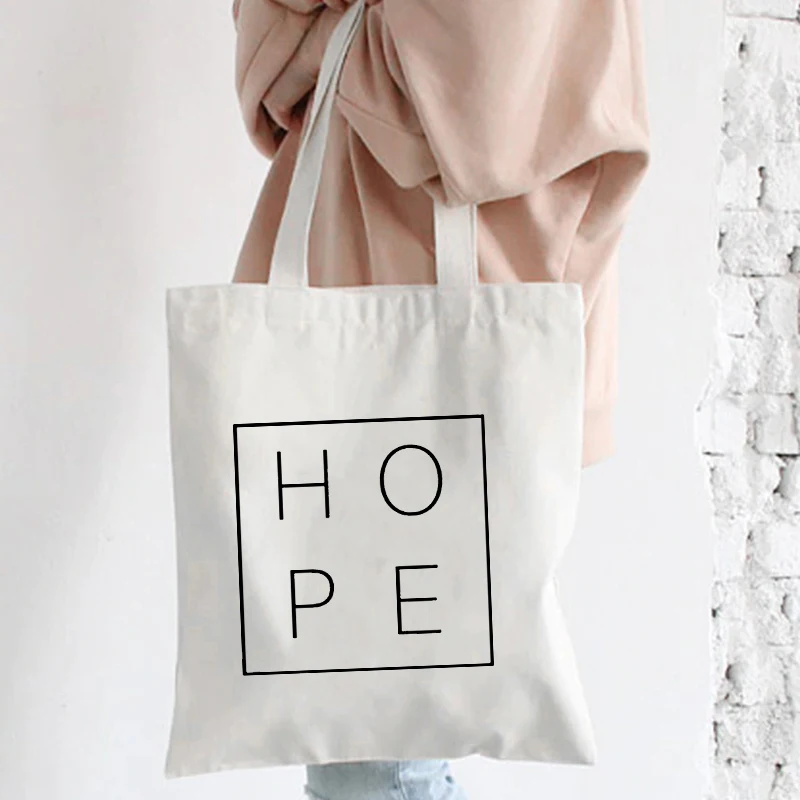 Холщовые дамские сумочки Hope с надписью, модная повседневная сумка-тоут для покупок, экологически чистые многоразовые мешки на плечо в стиле Харадзюку
