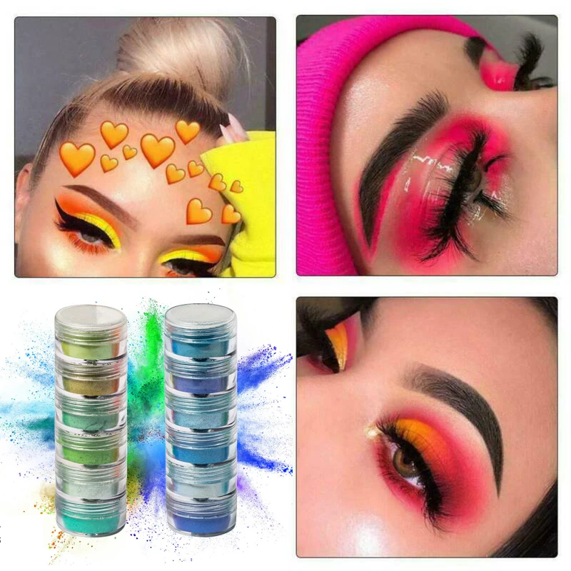 6 цветовнабор, Микс неоновых пигментов, тени для век, цветные блестящие матовые тени для век, пудра легкая в ношении, макияж для тела и нейл-арта, TSLM1