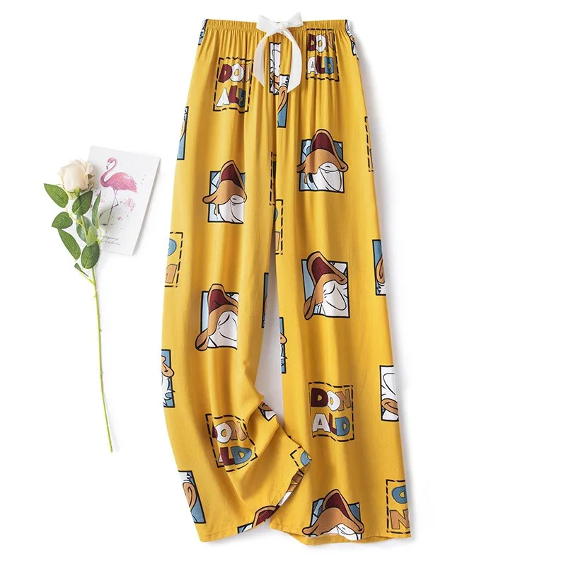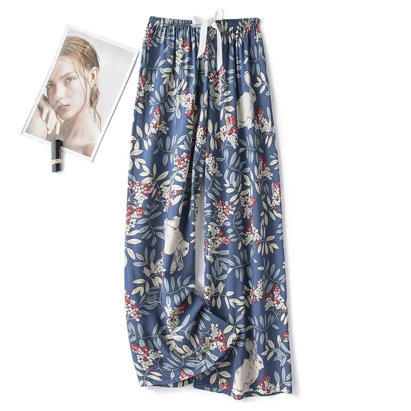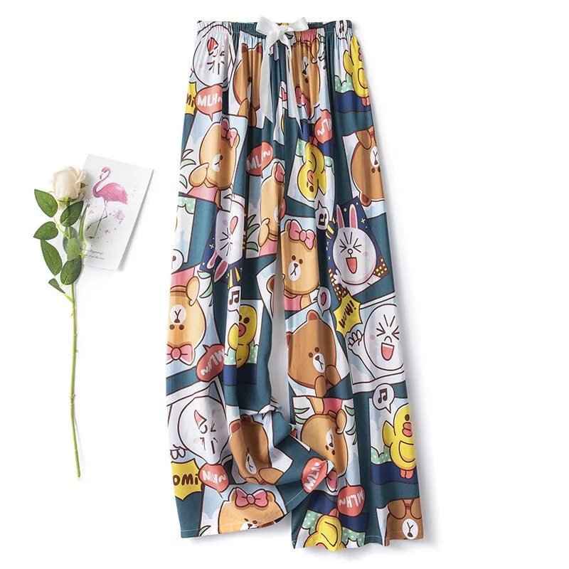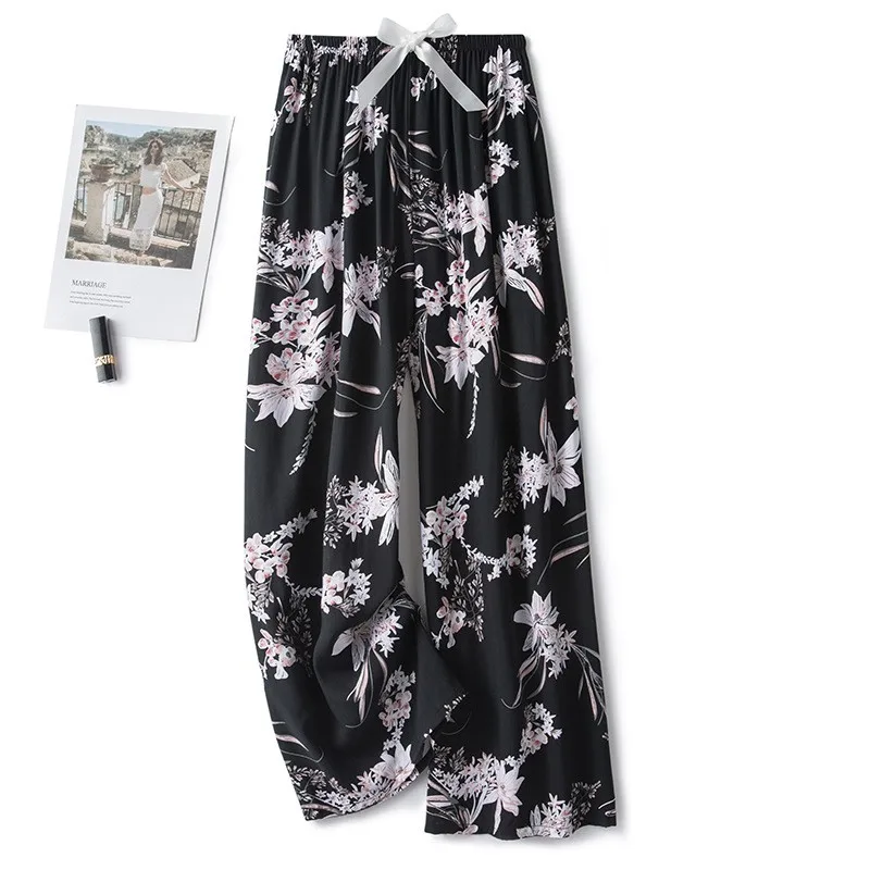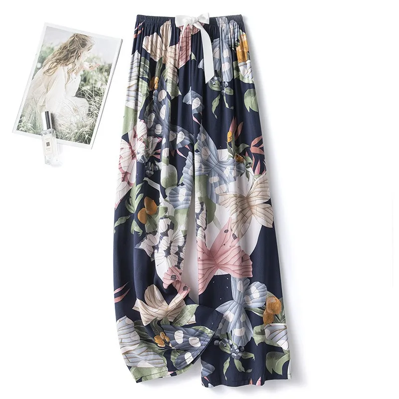Широкие брюки, вискозная одежда для отдыха, брюки, мягкая Ночная одежда, штаны для сна, женские летние брюки, свободная Пижама с эластичным поясом