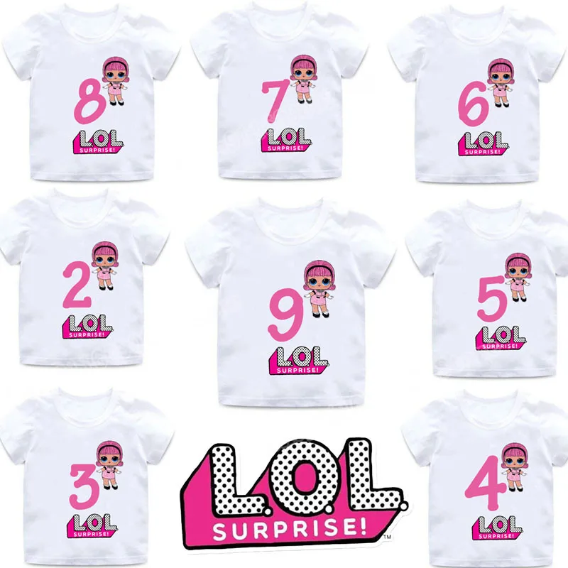 Футболка LOL Surprise Милая Детская летняя одежда с изображением куклы номер 1-9 осень Бутик Одежда футболки с рисунком для маленьких девочек топы с короткими рукавами
