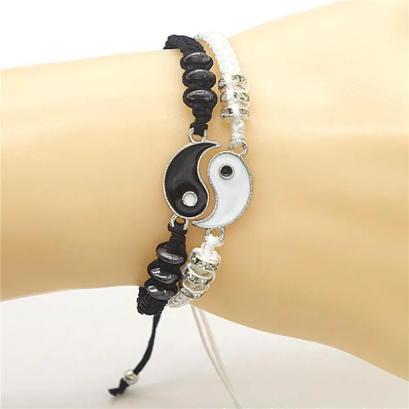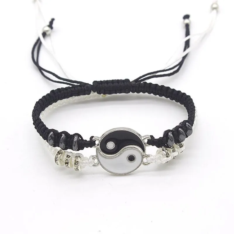 В комплекте браслет Yin Yang Комплект изысканные Тай Чи ручной работы с регулируемым шнуром лучшая подруга браслеты для женщин, ювелирные изделия для девушек