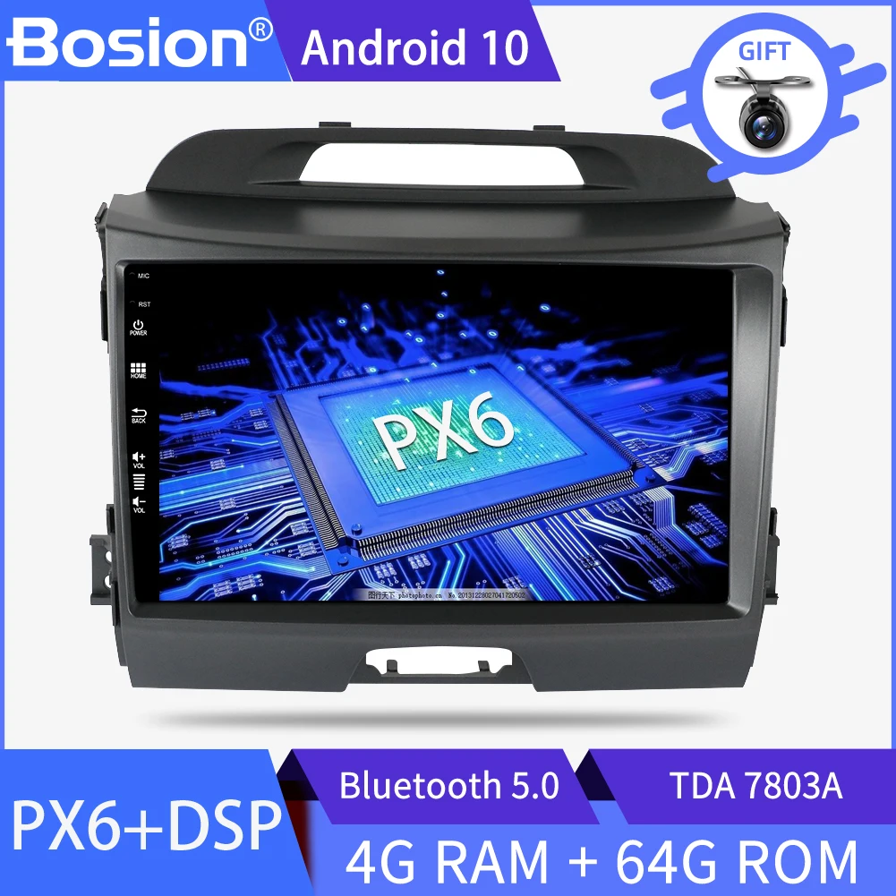 Автомагнитола PX6, 4 + 64 ГБ, Android 10, DSP, мультимедийный видеоплеер, навигация GPS для KIA Sportage 3 2010, 2011, 2012, 2013, 2014, 2015, 2016